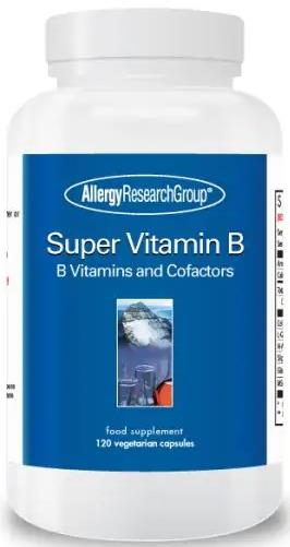 Super Vitamin B Complex is an advanced and complete B-vitamin supplement. It provides substantial amounts of all eleven B-vitamins, including the co-enzyme forms of vitamins B2 and B6 for enhanced bioavailability, and extra pantothenic acid for adrenal support. Instead of using vitamins derived from allergen-containing plant sources such as yeast or corn, the B vitamins in this formula are synthesised from hydrocarbons, which originate ultimately from living sources, with very low allergy potential.